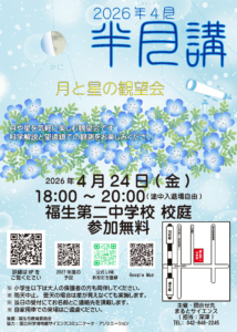 お月見というと満月が定番ですが、半月はクレーターを観察しやすく、満月とはまた違った表情を見せてくれます。望遠鏡を使った月の拡大映像もお楽しみください。